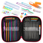 Type 1 1 x pin -7cm 5 x cotton thread -25 grams 1 x makeup bag 9 x soft handle crochet 10 x pear shaped safety(random colors) 1 x tape mixed colors (random colors) 1 x small seam ripper 3 x twists needles (one for large, medium and small) 3 x plastic needle -7cm 3 x plastic needle -9cm 1 x counter (small) color random 1 x counter (large) color random 10 x open counting circle ring - small mixed color 10 x open counting circle ring - large mixed color 14 x aluminum crochet hook 20 x plastic pin buckle 1 x pin 12cm (random color) 1 x ruler gauge 1 x yarn scissors 9 x blunt nose large eye needle 1 x thimble