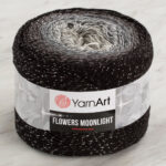 Yarnart Flowers Moonlight has self-transitioning marbled color options. It is a yarn blend of 53% organic cotton, 43% anti-pilling acrylic and 4% metallic polyester. It has a soft texture and is anti-pilling.