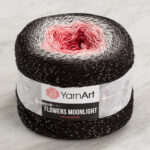 Yarnart Flowers Moonlight has self-transitioning marbled color options. It is a yarn blend of 53% organic cotton, 43% anti-pilling acrylic and 4% metallic polyester. It has a soft texture and is anti-pilling.