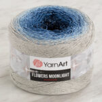 Yarnart Flowers Moonlight has self-transitioning marbled color options. It is a yarn blend of 53% organic cotton, 43% anti-pilling acrylic and 4% metallic polyester. It has a soft texture and is anti-pilling.